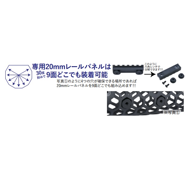 専用20mmレールパネルは9面どこでも装着可能(六角レンチで取付分解できます)