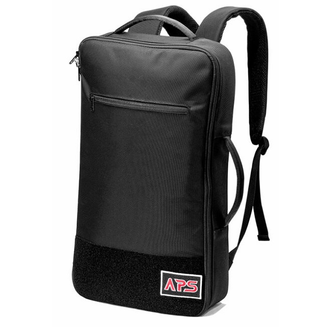 競技用としての高い機能性に加え、ビジネスバッグとしても使える洗練されたデザインを兼備。生地には、耐久性・防水性に優れた「ナイロン1680D PUコーティング」を施し、アクティブな移動にも耐えうる堅牢性を実現しました。背面およびハーネス部分には通気性の高いメッシュ素材を採用し、長時間背負っても蒸れにくく、夏場でも快適です。サイドには手持ちに便利なハンドルを配置し、移動時にはブリーフケースのように持ち運ぶことも可能。また、スーツケースのハンドルに通せるセットアップベルトも搭載しており、出張や遠征時にもスムーズな移動をサポートします。内部の収納には、APS-1 グランドマスター以外にもAPS-3を2丁同時に収納可能。競技用エアースポーツガンを安全かつスマートに収納できる設計です。また、一部CA870シリーズ※の収納にも対応しています。さらにフロントポケットには、APSカップや公式競技会で使用するパーソナルデータなどの書類が収納可能です。ビジネスシーンにも対応する収納力と機能性を備えています。