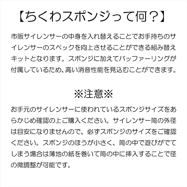 - サイレンサー用吸音材ちくわスポンジ38mm [TKW-V2-38MM]