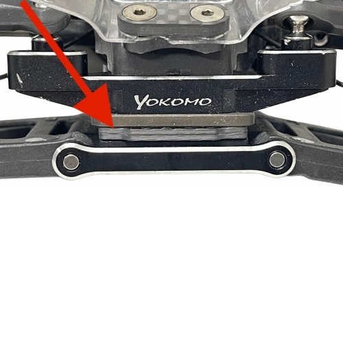 ROワンメイクレース等で RO用のフロントタイヤ を使用する際、車をより曲がるようにするために フロントサスマウントとシャーシの間に2~3mmのスペーサーを挟んでロールセンターを下げたりしますが、 4個所にシムを入れるのは至難の業で、気が付くと車がバラバラになっていたりします。