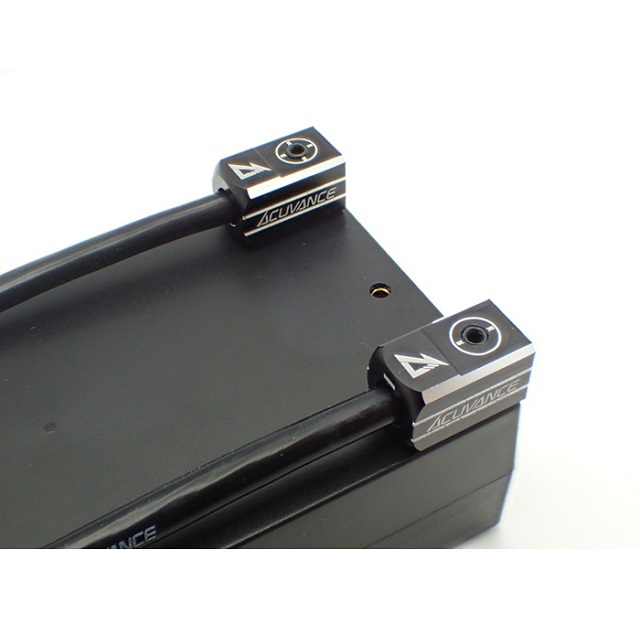 コネクタサイズに合わせた精密設計とセットネジによる圧着固定によりグリップとコネクタとの密着性を高め、アルミ体積・コネクタとの接触面積を最大限確保したことで、グリップ部からバッテリ本体の発熱を効率よく放熱し、高負荷走行時のパワーロスを低減します。