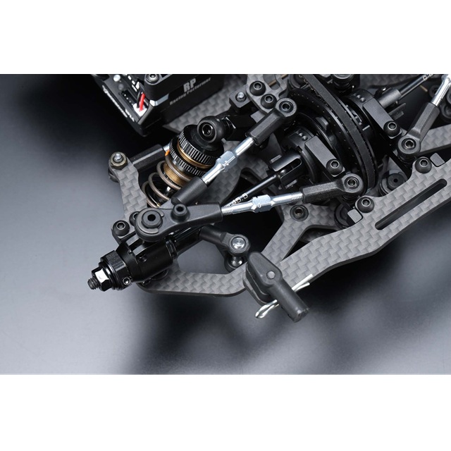 ローマウントされたフロントショックステーで、コーナーのターンインをさらにシャープに仕上げることが可能。
