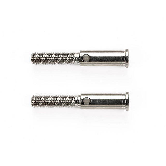 DT-04シャーシに標準装備しているフリーホイールシャフト(フロントアクスルシャフト)に換えて使用。OP.1610 クランプ式アルミホイールハブ(9mm厚 2個)と組み合わせて使用することでワイドトレッド化が可能。ホイールやタイヤの選択も広がり、走りがいっそう楽しくなります。