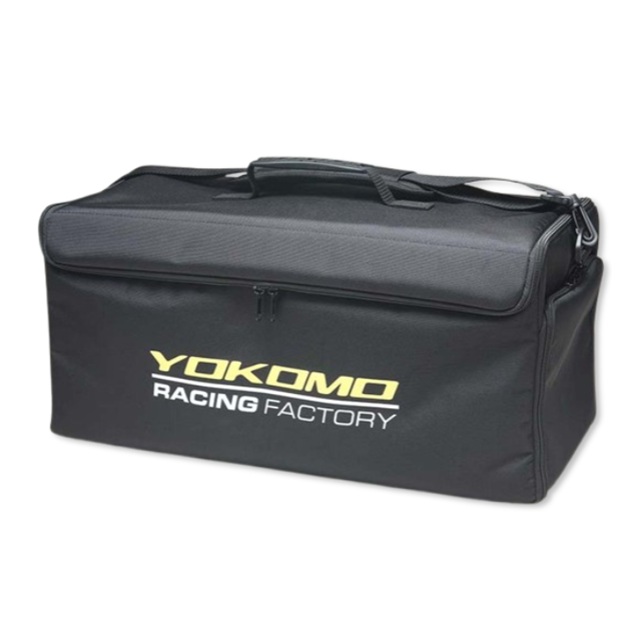 マシン収納部は樹脂製のインナーフレームに覆われていますので耐衝撃性も抜群、大切なマシンを保護します。長さも内寸で約50cmありますから、マシンを入れてもさらにスペアタイヤやパーツを収納することが可能。上部収納にはRTR用の送信機やパーツケース、充電器やバッテリーなどを収納でき、このバッグひとつですべて完結するオールインワンパッケージです。