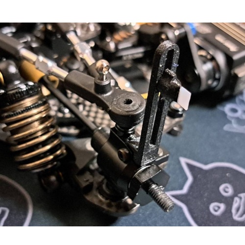 ツーリングカーのアライメントはカチャカチャ(アライメントゲージ)で緻密に計測することが多いと思いますが、 キャスター角はゲージに目盛りはついているものの、実際計測するとなると目印が無かったりして、夜も眠れないのではないでしょうか?