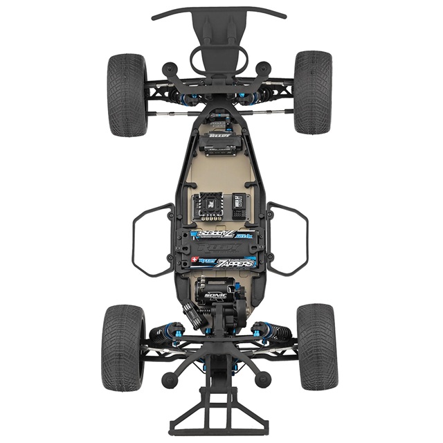 新しいショートコース専用シャーシは、剛性を高めた RC10B7 の強化版で、さらにガルウィング・ロングアームサスペンションを採用。どんな路面でも安定したグリップと扱いやすさを実現します。