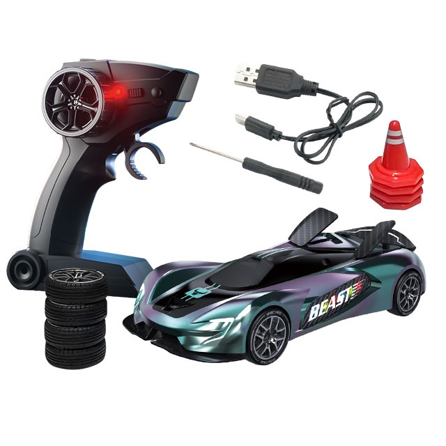 - ドリフト専用に設計された低重心と滑らかなドリフトタイヤによりパワースライド、コーナリング、ドーナツターン、360°スピンが可能!