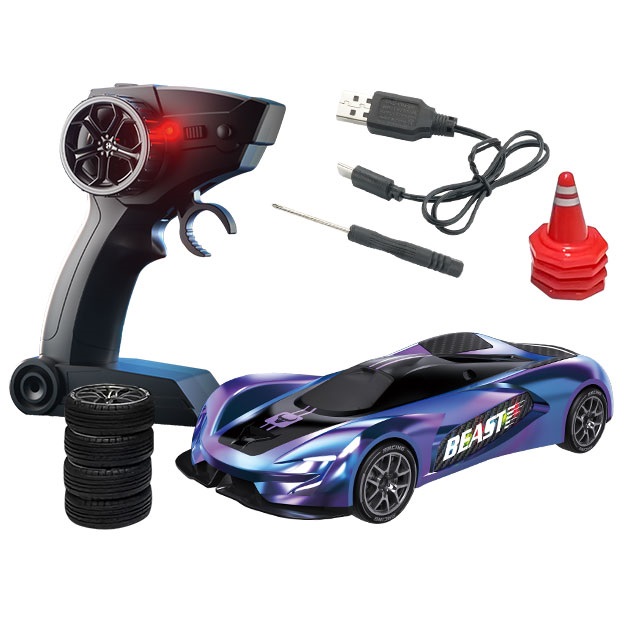 - ドリフト専用に設計された低重心と滑らかなドリフトタイヤによりパワースライド、コーナリング、ドーナツターン、360°スピンが可能!