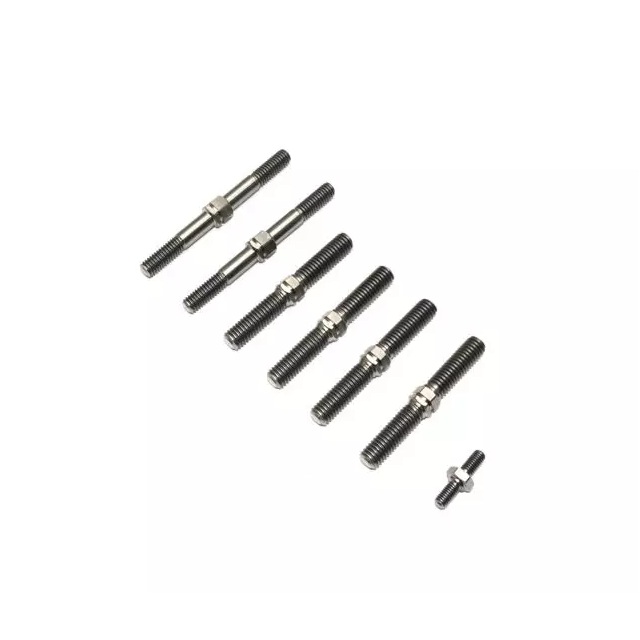 標準のスチール製のロッドからチタン製ロッドにすることで約40%軽量化されサスペンションの追従性が向上。軽量なチタン製のサーボロッド、STタイロッド、前後アッパーロッド(1台分)をセットにしてご用意。