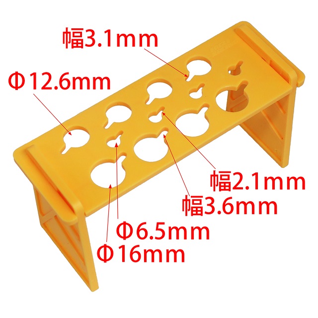 Φ6.5mmホール×4、Φ12.6mmホール×4、Φ16mmホール×4を設け、ダンパーの本体やダンパーのシャフトを保持する設計となっており、様々なサイズのダンパーに対応します。