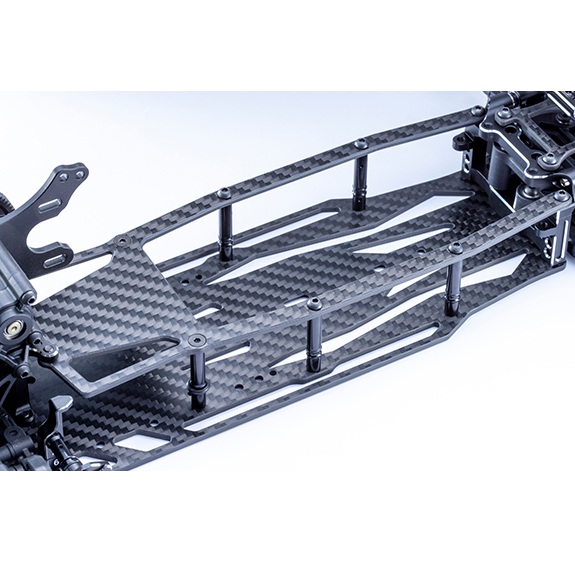 サイドデッキタイプのアッパーデッキは、バッテリーホルダー上部を連結するスタイルで適度なしなりと剛性を発揮します。