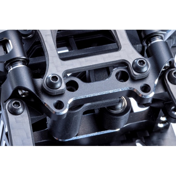 ベルクランク上部の保持の他、フロントアッパーアームを保持するアルミ製の軽量/高剛性なパーツです。