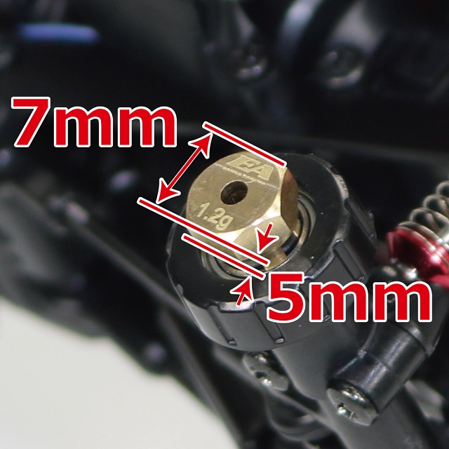 真鍮製5mmワイドホイルハブは重量が1つ1.2gなので、シャーシ低位置の重量を合計で4.8g増やし、登坂時のグリップを増加させます。