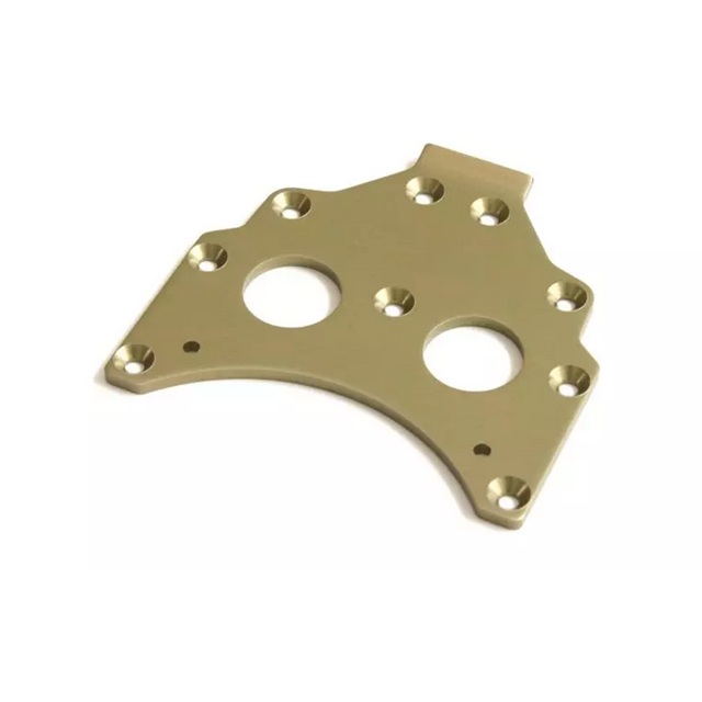 最高強度を誇る超々ジュラルミン7075Sを用いた贅沢なギアボックスマウント。表面仕上はハードアルマイト加工により傷が付き難くく、高い剛性が確保される。