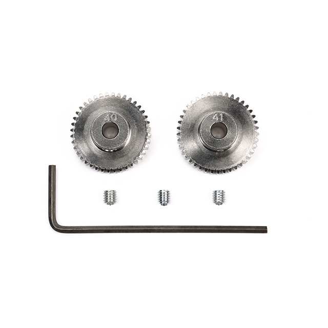 04モジュールのアルミ製ピニオンギヤ(40T/41T)、3mmイモネジ3個、六角レンチをセット