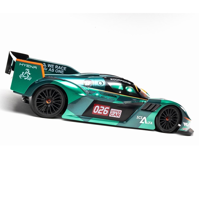The Hyena is designed with ultra-detailed realism, closely mirroring full-scale hypercars while maintaining racing-optimized proportions. With its low center of gravity, the body enhances chassis performance, delivering precise handling and responsiveness on the track.