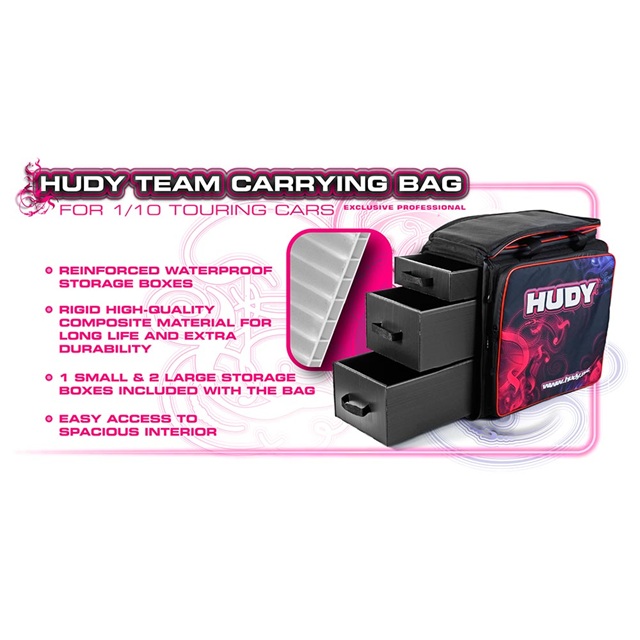 The super-modern and stylish carrying bag has full-colour graphics over the entire bag and is emblazoned with official HUDY graphics. End flap features clear holder for driver identification card. High-quality European materials and craftsmanship are abundant.