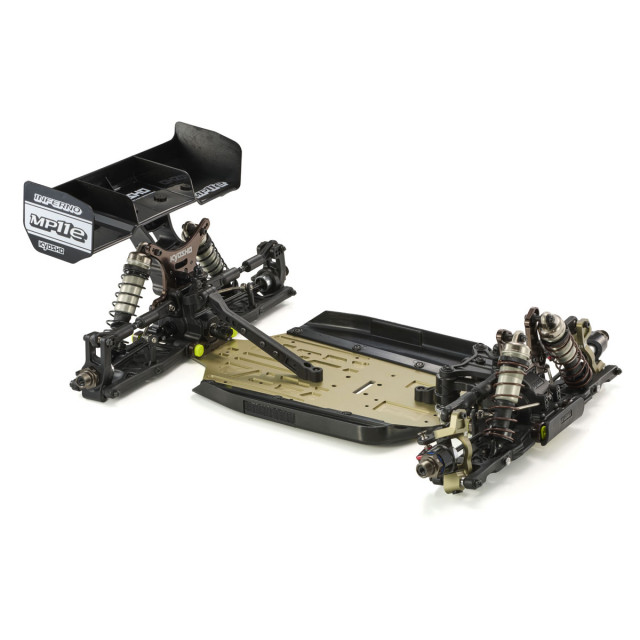 完全新設計のMP11e専用ボディは、現代のスピードコントローラーサイズに対応した形状であることに加え、空力性能を高めて卓越したハンドリング特性の発揮に貢献します。MP11で実績のあるサスペンションには同車用オプションパーツの装着も可能で、このことは状況に応じた素早いセットアップ変更が要求されるレースにおいて確かなアドバンテージとなります。