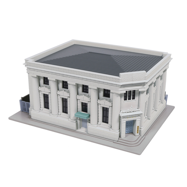 ・ギリシャ神殿を思わせるドリス式の列柱が信用と貫録を醸し出すコンクリート建築を経年の深みを加えた色合いで製品化