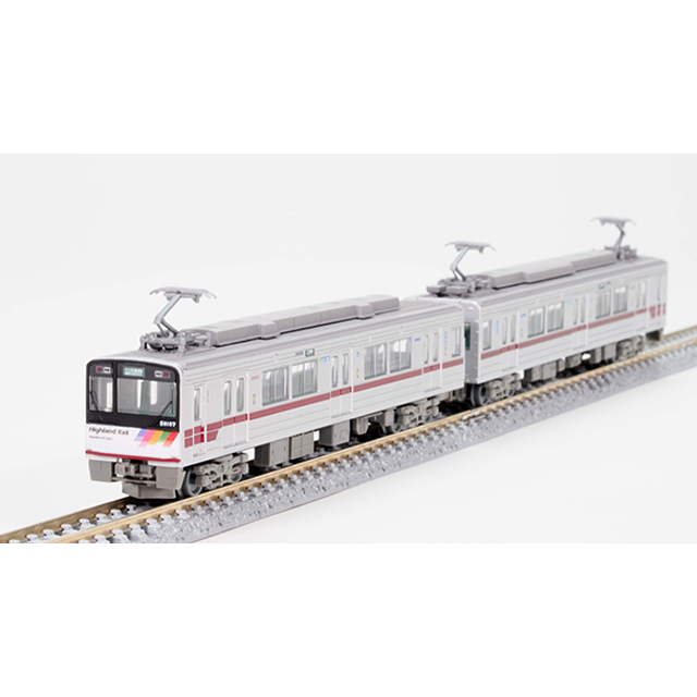 改造元となった東武鉄道20000系イメージのラインカラーを側面に配し、前面はアルピコ交通オリジナルデザインのダイナミックストライプに加えて足掛け部に側面帯と同色のラインを装飾しています。今回は20100形第4編成の「TOBU×ALPICOコラボトレイン」を製品化