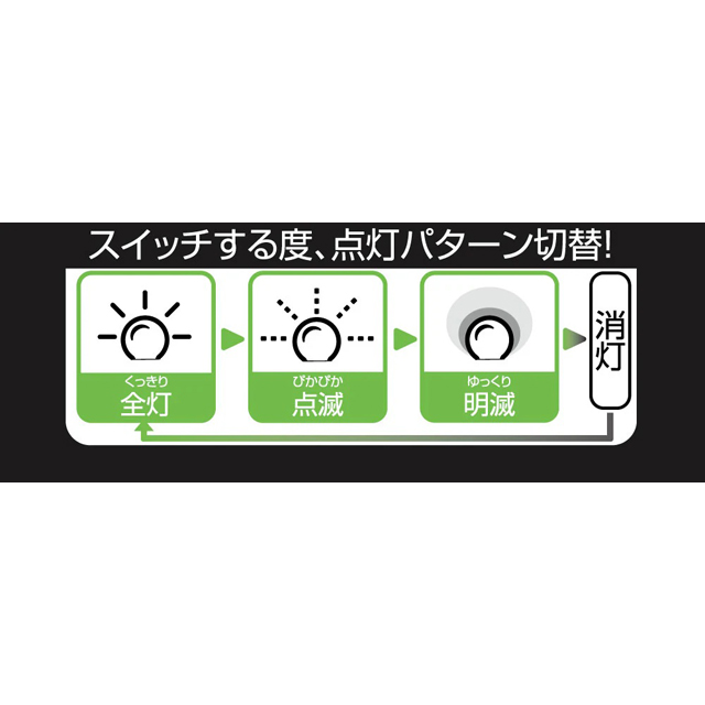 【点滅機能】 3モード 点灯パターン (OFF → ON → 点滅→ 明滅→ OFF)