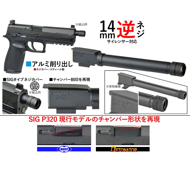 - マルイP320用SIG SAUER FactoryタイプスレッドアウターバレルBK(14mm逆) 「現行形状」 [DET-OB-TM62ABK]