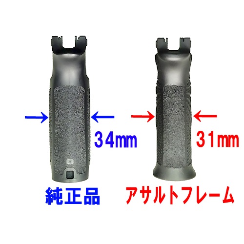 さて、東京マルイP320フルサイズのグリップフレームはMサイズで充分握りやすく撃ちやすいのですが、手の小さい方には「大きすぎる」という事で、SサイズのアサルトフレームSを製作しました。