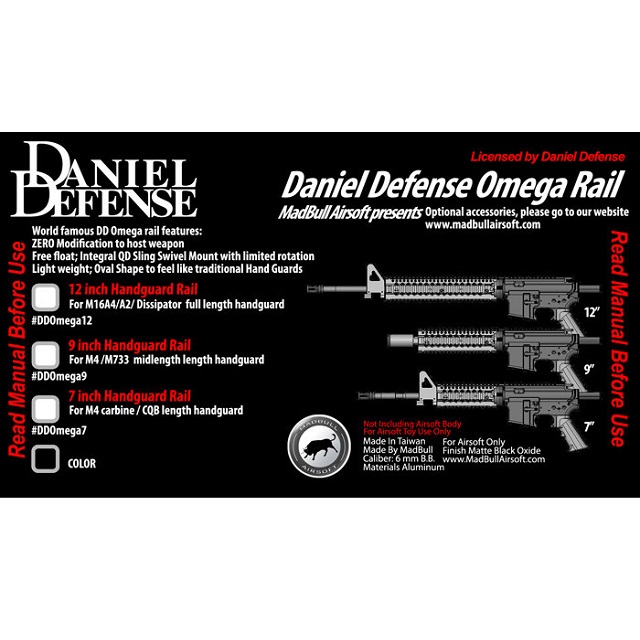 NOTE: For Airsoft only; The Airsoft version rail is using lower grade Aluminum without forge heating process. It will be very dangerous if you install it on firearms.
