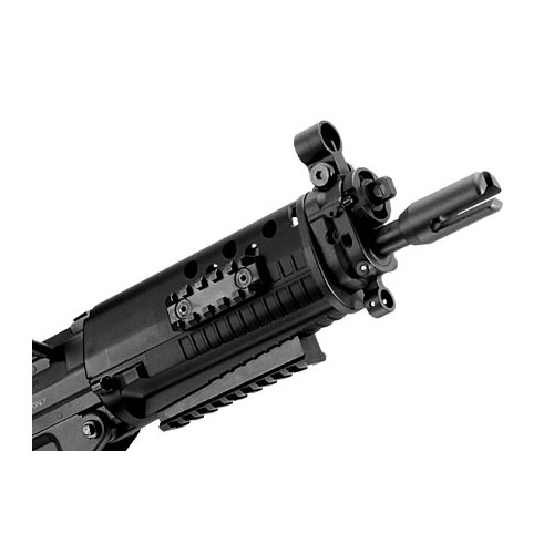 ●SIG552専用ハンドガード:バレルの熱をさましやすくするための穴(クーリングホール)が特長的なハンドガードを再現。現代タクティカルガンに必要不可欠な20mm幅のマウントレイルを右側面とハンドガード下に設置し、各種オプションパーツを取り付けることができます。