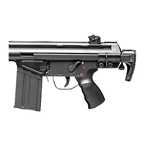 ●外観のリアリティを追求:MC51の特長を忠実に再現。セレクター周りには0(セフティ)、1(セミオート)、そして20(フルオート)の文字が刻まれています。また、本物から採寸を行なったG3シリーズをベースとし、MC51にもその再現性が活かされています。
