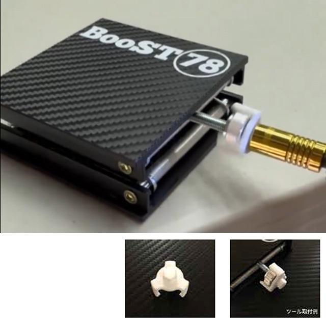 バックの隙間などにも楽々収納可能。表面はカーボン柄に「BooST78」のロゴ入り!