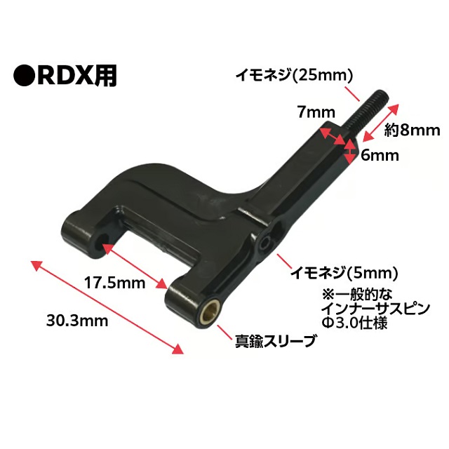 真鍮スリーブ式 広切角対応フロントアーム RDX用 2本入 [ET-055] メーカー TOPLINE 品番 ET-055 商品名 真鍮スリーブ式 広切角対応フロントアーム RDX用 2本入 [ET-055] 定価(税込) ¥ 1,518 特価(税込) ¥ 1,215 送料区分 ネコポス対応 ネコポス対応 配送料:330円 ネコポス対応商品。 利用規約(送料説明)の表示 ※詳しい送料説明 オンラインショップの在庫状況 オンラインショップ 在庫わずか 店舗別の在庫状況 大阪日本橋店 在庫わずか 東京秋葉原店 在庫切れ 福岡博多店 在庫切れ 【有料】ラッピングサービス ラッピングサービスを希望される場合は、商品と一緒に対応するサイズのラッピングサービスをカートに入れてご注文ください。 ラッピングをご希望の方はこちら 数量 個 この商品へのお問い合わせ 剛性としなやかさを両立したデルリン製の高性能サスアーム(真鍮スリーブ式)です。真鍮スリーブを圧入し、ハイブリッド構造とすることで、フロントの剛性やレスポンスアップを目指しました。また、長いイモネジ(25mm)を標準装備し、アーム先端部の剛性アップを狙いました。ダンパー取付穴は2箇所とし、更に片方にはイモネジ(5mm)を入れることで、ねじ込分の耐久性を確保しました。【2本入】 この商品を買った人はこんな商品も買っています ページ:0 / 0 真鍮スリーブ式RDXフロントアッパー/ロアサスマウントセット [TP-605] TOPLINE ¥ 4,224 在庫切れ ハイトラクションリアハブキャリア [ET-053] TOPLINE ¥ 687 在庫あり RDX カーボン強化ブレースリアショックタワー [0671-FD] WRAP-UP NEXT ¥ 2,376 在庫わずか RDX用高剛性フロントアッパーアーム アルミスペーサー仕様 [ET-067] TOPLINE ¥ 1,056 在庫あり 樹脂製 ボールキャップ(S/M/L各4個付) [RD-207] Reve D ¥ 773 在庫あり RDX用マルチセレクトフロントナックル ベース部品 [D1-MK-B] Reve D ¥ 4,554 在庫あり ASTスプリング27(全長27mm/ソフト) [TP-584S] TOPLINE ¥ 775 在庫あり 真鍮スリーブ式 広切角対応フロントアーム YOKOMO系 2本入 [ET-054] TOPLINE ¥ 1,215 在庫わずか RDXマルチセレクトフロントナックル用 アルミ製ナックルプレート [D1-MK-PH] Reve D ¥ 2,178 在庫あり RDX用 アルミ製シャーシブレース(2個入) [D1-003CA] Reve D ¥ 3,168 在庫あり ASTスプリング27(全長27mm/ミディアム) [TP-584M] TOPLINE ¥ 775 在庫あり 真鍮クロススパイダー [ET-043] TOPLINE ¥ 344 在庫あり アルミ製スパーギヤホルダーセット RDX/MC1用 [D1-644] Reve D ¥ 2,079 在庫あり RDX用 グラファイト製 ベルクランク [D1-202G] Reve D ¥ 1,782 在庫あり RDX用 SPMチタン製キングピン(2個入) [D1-414T] Reve D ¥ 773 在庫切れ RDX用 アルミ製 ベルクランクポスト(右側) [D1-201PR] Reve D ¥ 228 在庫あり RDX用 アルミ製 ベルクランクポスト(左側) [D1-201PL] Reve D ¥ 258 在庫あり SPMチタン製 ウィングスクリュー(2本入) [RT-003A] Reve D ¥ 674 在庫あり RDX用 アルミ製ナックルストッパー 3.5mm 2本入 上級者向け [D1-KS35] Reve D ¥ 515 在庫わずか RDX対応 POM削り出しアイドラーギヤセット 2pcs [0658-FD] WRAP-UP NEXT ¥ 1,782 在庫あり