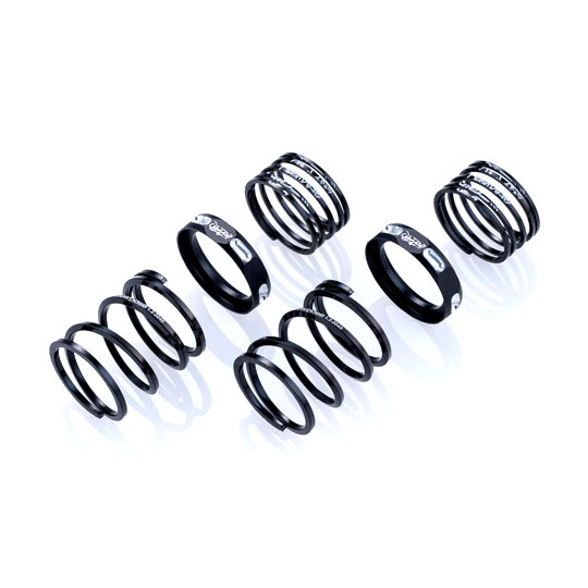 ヘルパースプリングを採用したツインタイプ。メインを自由長20mmとし、ヘルパースプリングにも角断面形状の材料を採用。スプリングシートにも軽量化を施すことでスプリング全体の追従性を向上、特にリヤに使用した際のトラクション性能が向上します。さらにヘルパースプリングが線間密着した時のみに現れるODロゴも拘りの一つです。
