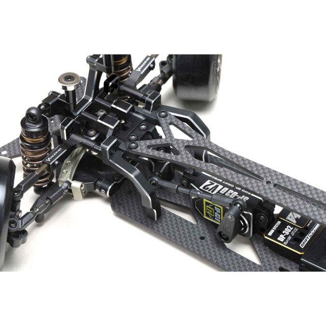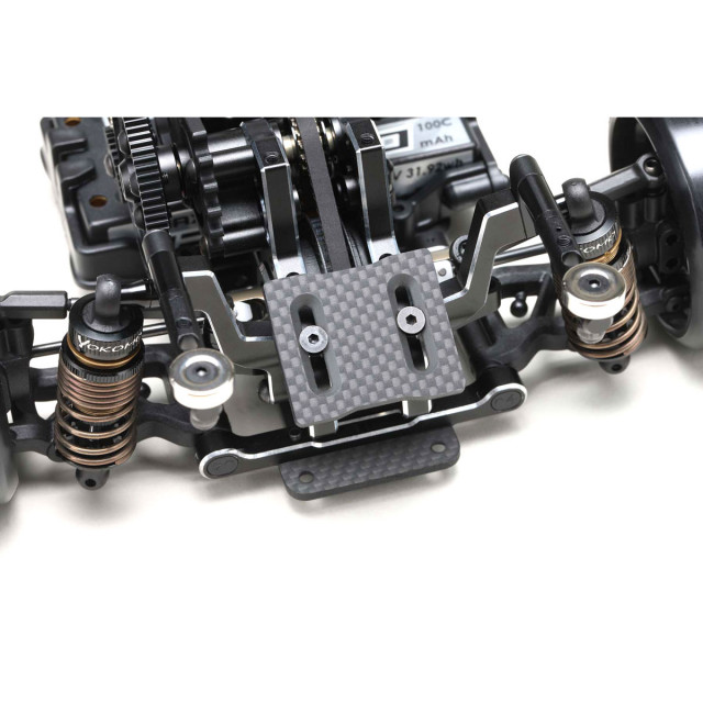 フロント周りでは剛性感によりフロントタイヤへの面圧を高め、コーナー脱出時などのコントロール性を引き出します。サスアームは前後共にサスピン式のHアームを採用していますが、従来のMDシリーズのAアームにも変更でき、今後のオプションパーツ展開も楽しみな設定です。