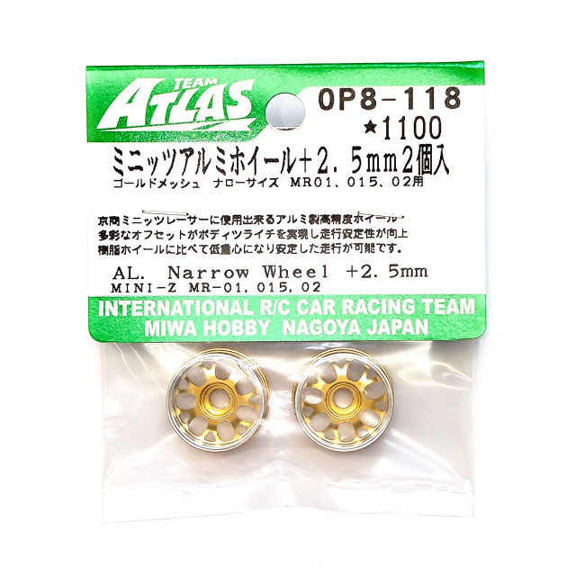 ミニッツ アルミホイール ゴールドメッシュ ナロー +2.5mm 2個入 [OP8-118]