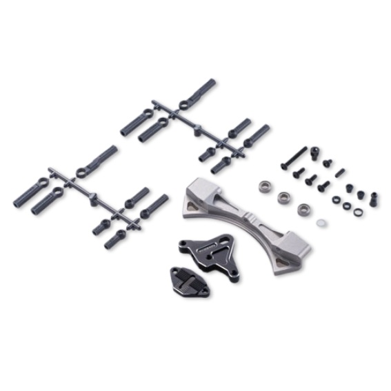 アルミ湾曲スライドラックがType-3 となって新登場!常用できる最大舵角を90°に設定し開発。最大舵角付近でも切れ角を確実に制御する為にラックの半径R を小径化。さらにアジャスタブルベースを採用することでラック全体を1mm 刻みで最大4mm 前方に移動可能。さらに新開発のパーフェクトボールエンドをセット使用することで無加工で90°に達する切れ角を実現しました。カラーはパープル, レッド, ブラックの3 色をご用意いたしました。