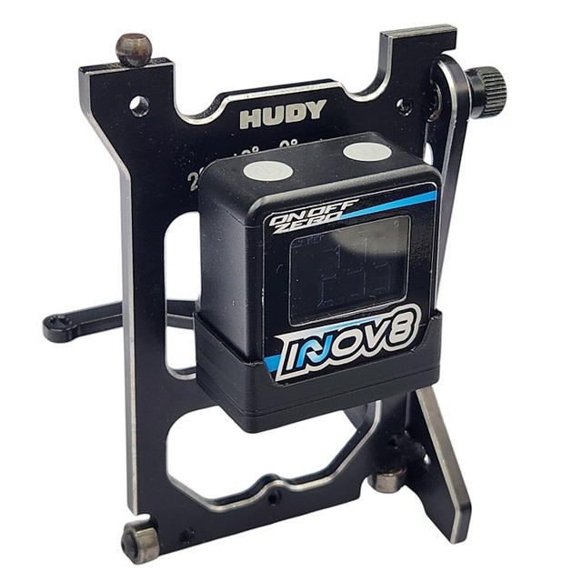 キャスタープレートはハブに取り付け、マイクロデジタル角度ゲージは正確に直接クリップで固定されます。これにより、複数のキャスタープレートを使用する場合でも、他のコーナーへ簡単に移動可能です。また、キャンバーやトーのチェックなど、ゲージを他の用途に自由に使えるようになります。