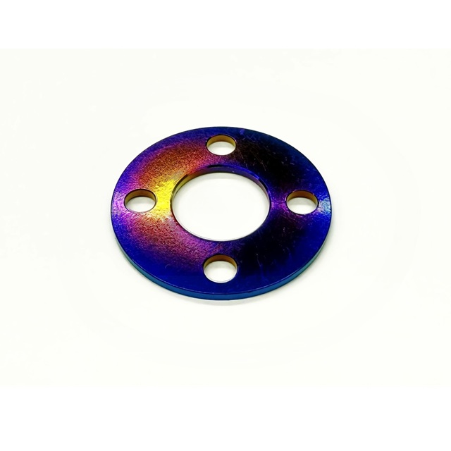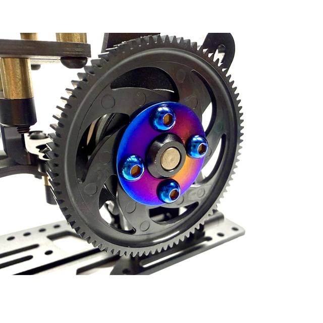 ■64チタンの焼き色がブルーからパープルやゴールドなどに変化する艶めかしい発色が美しい!シャーシのドレスアップにもお勧めですよ。