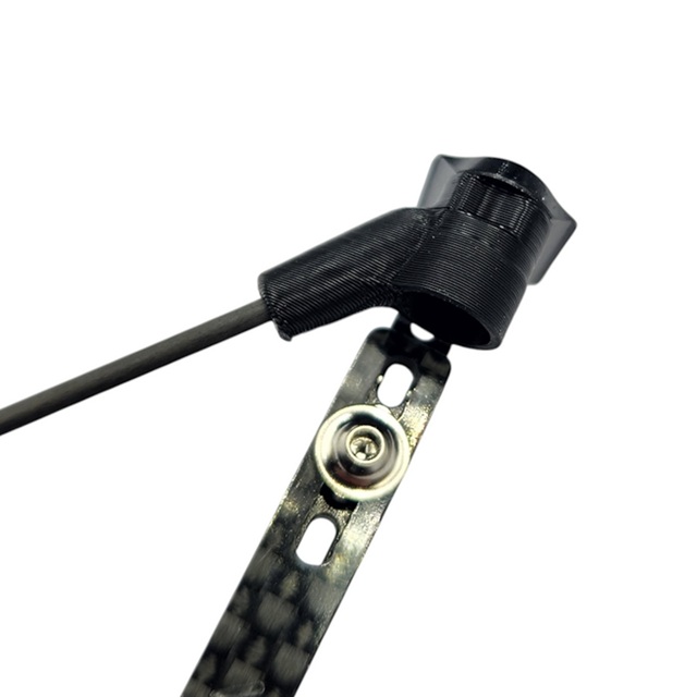 このシステムをボディマウントに取り付けるには、付属のM3x6ボタンヘッドネジをマウント下側から挿入します。1.5mmカーボンロッドが上部と下部を接続する構造になっており、 下部セクションは柔軟な素材でプリントされ、衝撃を吸収。カーボンロッドの破損を防ぎます。
