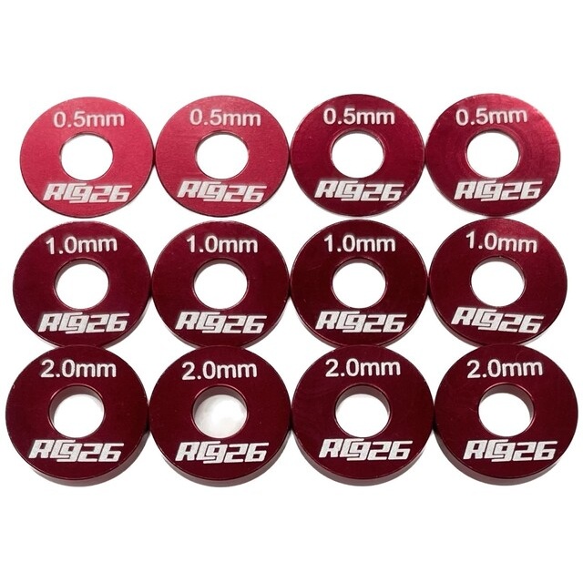 - アルミホイールスペーサーType-2セットレッド (0.5/1.0/2.0mm各4個入) [KN-HS05RD-A]