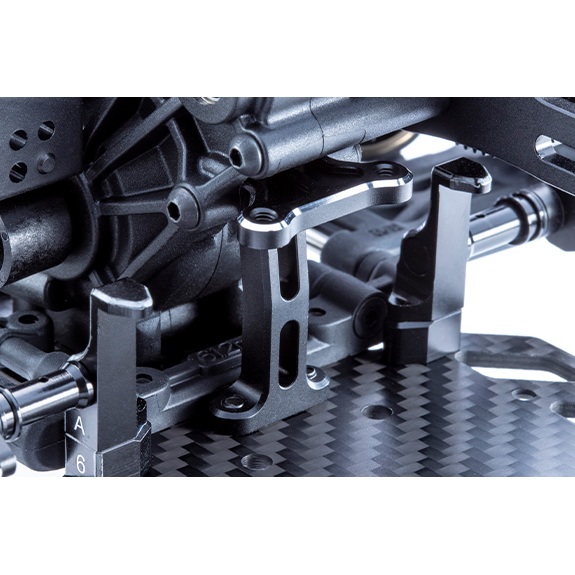 メインシャーシ、アッパーデッキ、ギヤボックスを結合する軽量/高剛性なアルミを使用したマウントパーツです。