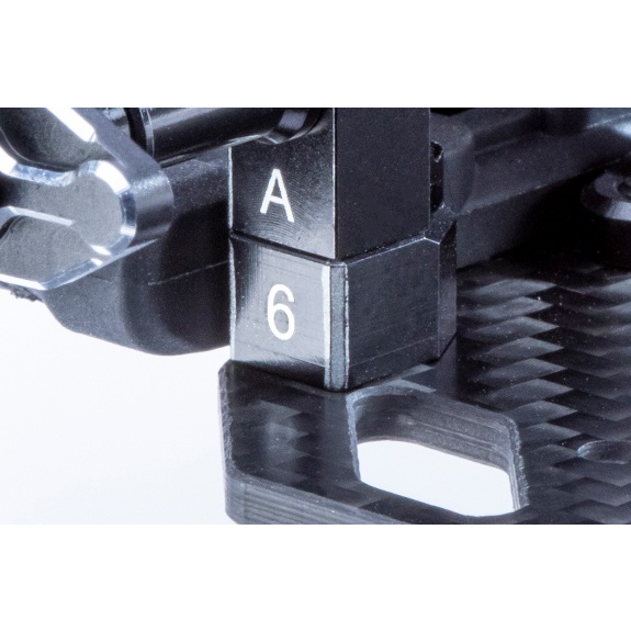 メインシャーシとバッテリーホルダーA、Bの間に入れる 6mm厚のアルミ製スペーサーで、1台分(2個)のセットになります。