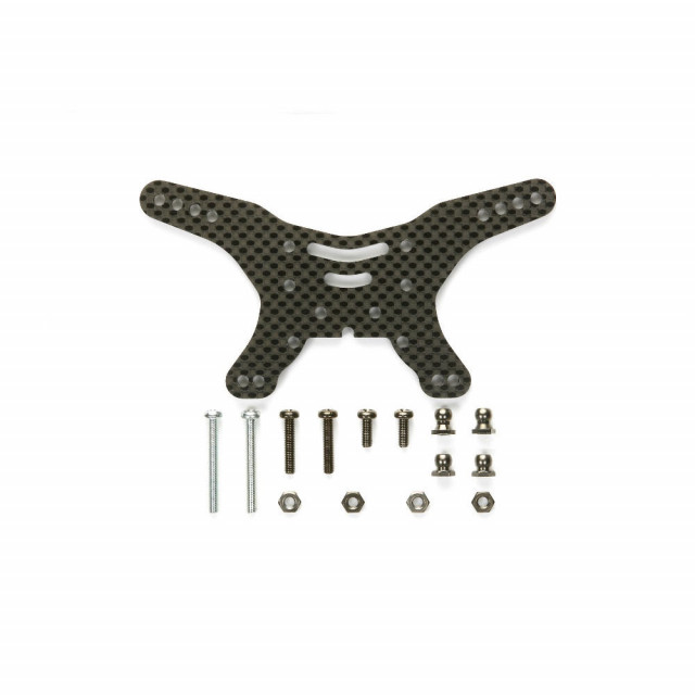標準装備のM1部品に換えて使用。3.5mm厚カーボン製ダンパーステーはねじれやたわみがほとんどなく、ダンパーの作動効果を高めます。