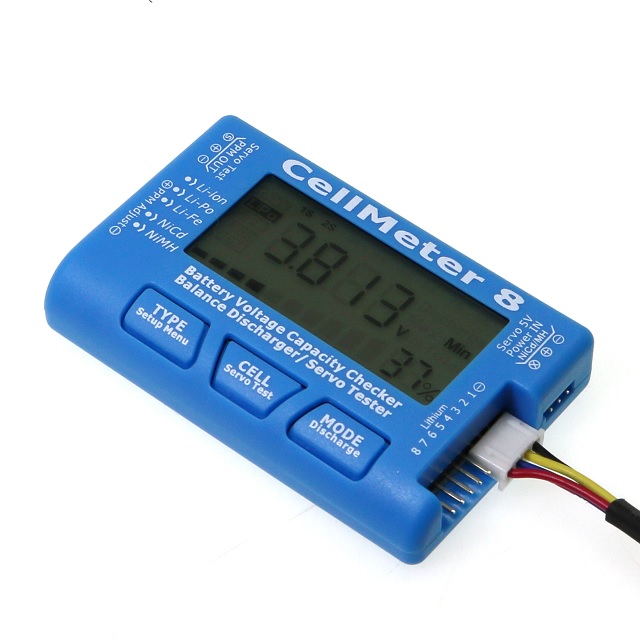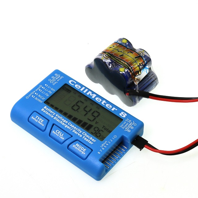 セル数は、Li-Po/Li-Fe/Li-Ionは2-8セル、Ni-MH/Ni-Cdは4-8セルで使用可能です。
