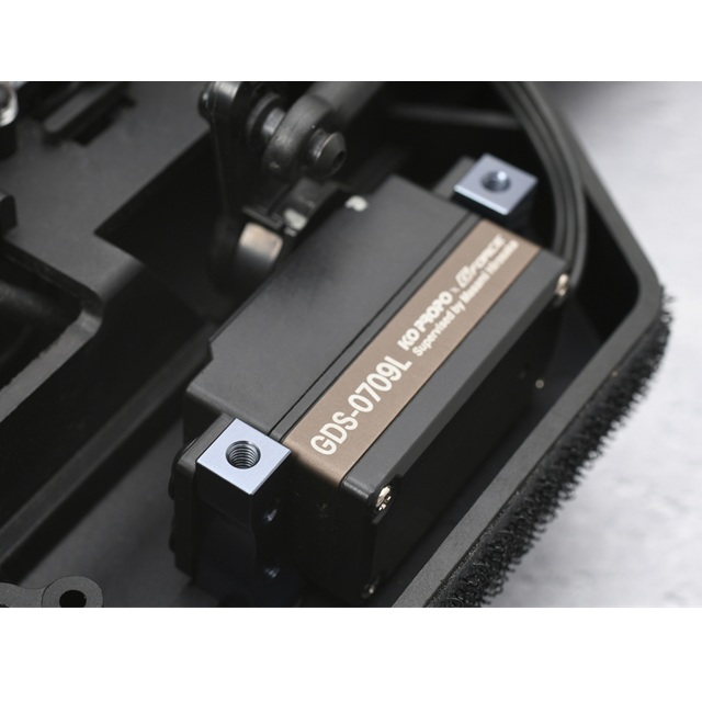 サーボをガッチリ保持し、ステアリングのダイレクト感を高めるアルミ製