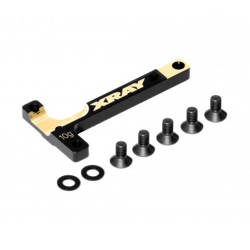 Alu & Brass chassis T-brace designed for X4 makes the car more stable, generates more rear traction and allows chassis flex adjustments to alter steering characteristics by adding and removing screws from the brace. Brass material puts weight in the center of the chassis and helps to lower the CG.