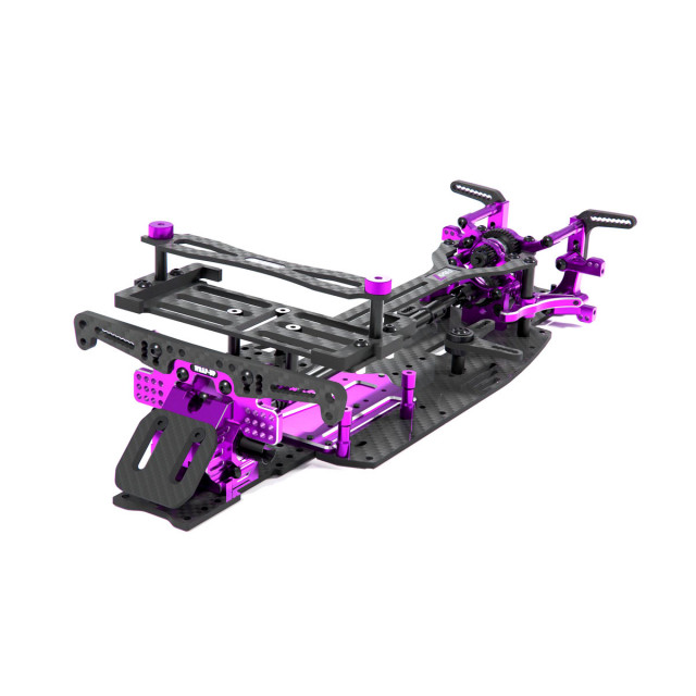 ■ 240-270mm間のホイールベース変更を可能にする分割型カーボンシャーシ&アルミジョイントベース。