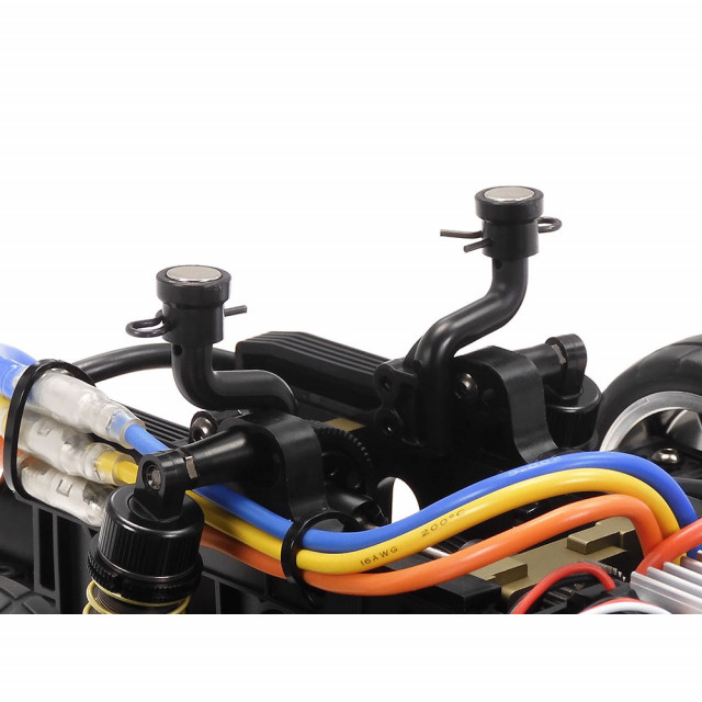 ★強化樹脂製ロワデッキの後端センターにモーター(別売)を縦置きして後輪を駆動する実車に近い駆動レイアウトを採用。