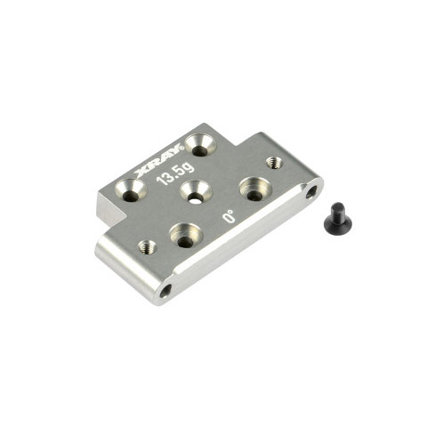 The front lower alu arm mount makes the car more stable and increases on-power steering. The mount has an integrated 0° kick-up angle. Optional weight can be added to increase the weight of arm holder. CNC-machined from high-quality Swiss 7075 T6 aluminum.