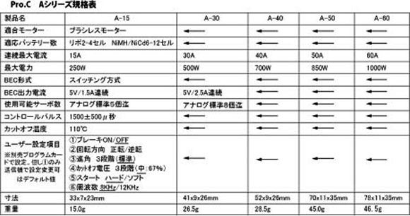 Pro.C A-50は最大負荷電流50A、リポバッテリー2セル?4セル対応となっています。